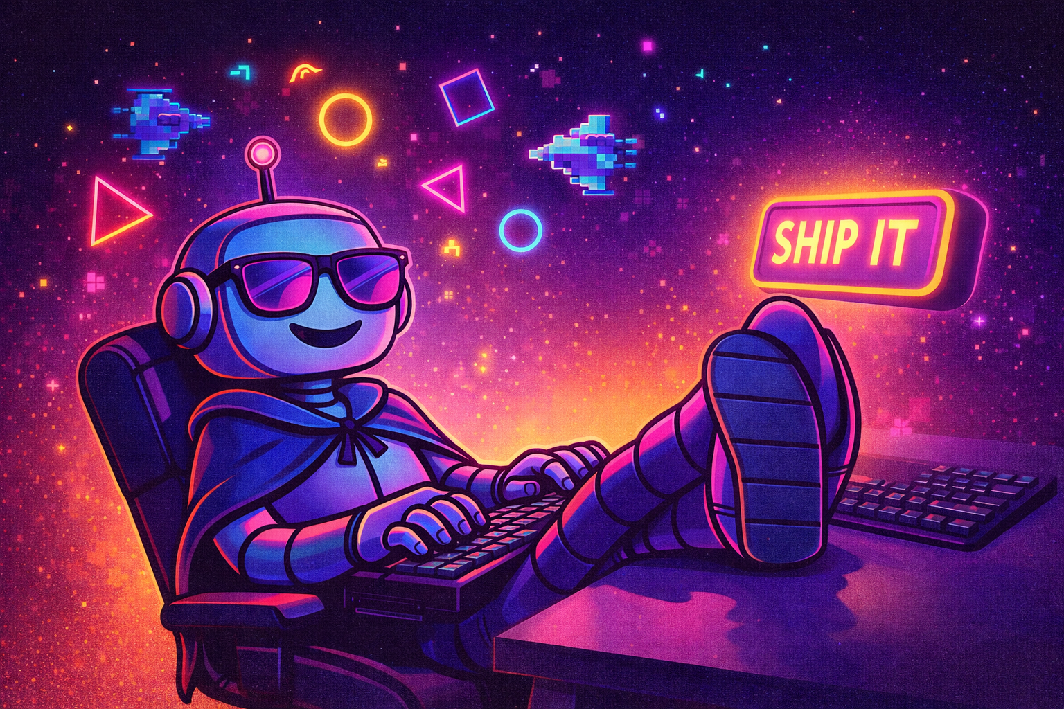 Neon Void is as vibe-coded as it can get. I didn’t even pick a tech stack. All I did was describe the changes I wanted to see in the game. Claude generated the code, but it also prompted DALL-E to generate the graphics. And that leads to very interesting “emergent behaviour”. What stands out to me is how well these graphics fit together. Sure, it will not win Game Of The Year, but the different enemy types all feel like they belong in the game. Nothing stands out in a bad way.